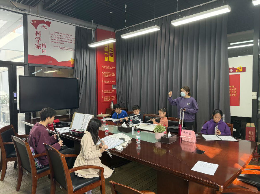10月18日的课程,陈炜、杨蚕、陈余馨悦组成的导师团队带领乐团学员巩固练习了《音乐之声》和《第二圆舞曲》。在这节课中,老师指出了弦乐声音不够饱满,节奏把握不准的问题。同时还提醒了大管学员要对长音处理更加熟练。指挥陈余馨悦带领着学员分析乐曲每一段的情绪变化,帮助学员提高音乐感知能力。